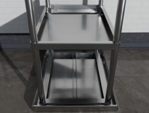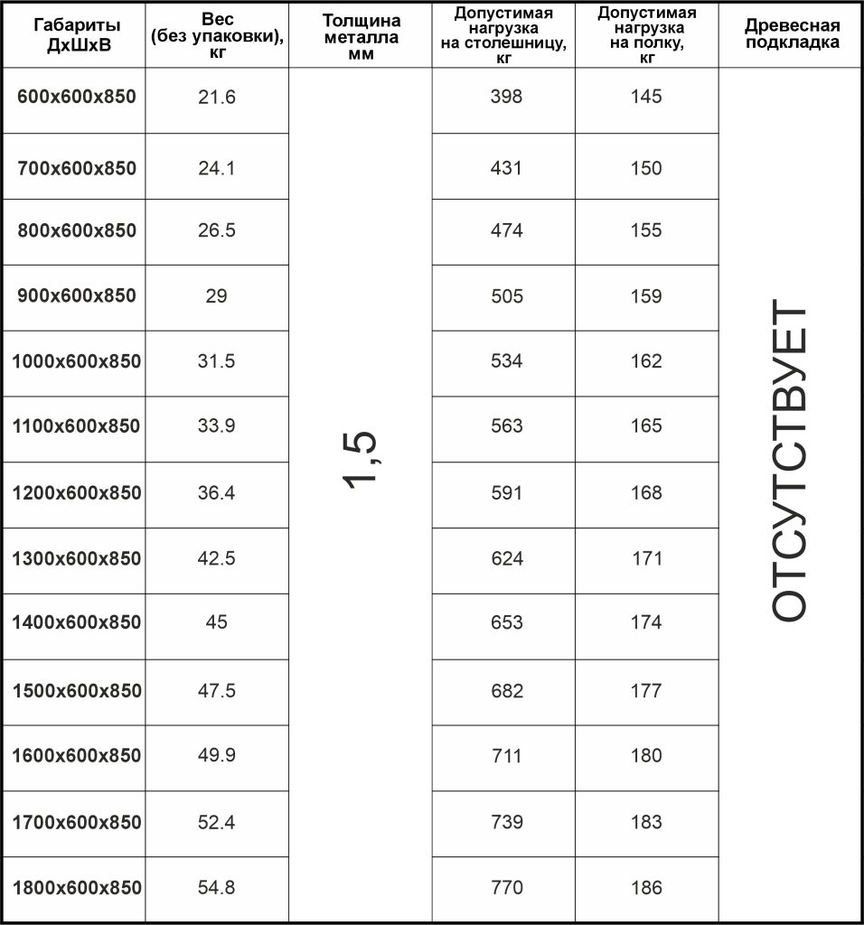 Жесткость конструкции исключительно за счет материалов из нержавеющей стали, что позволяет использовать стол в любых условиях при любой влажности.