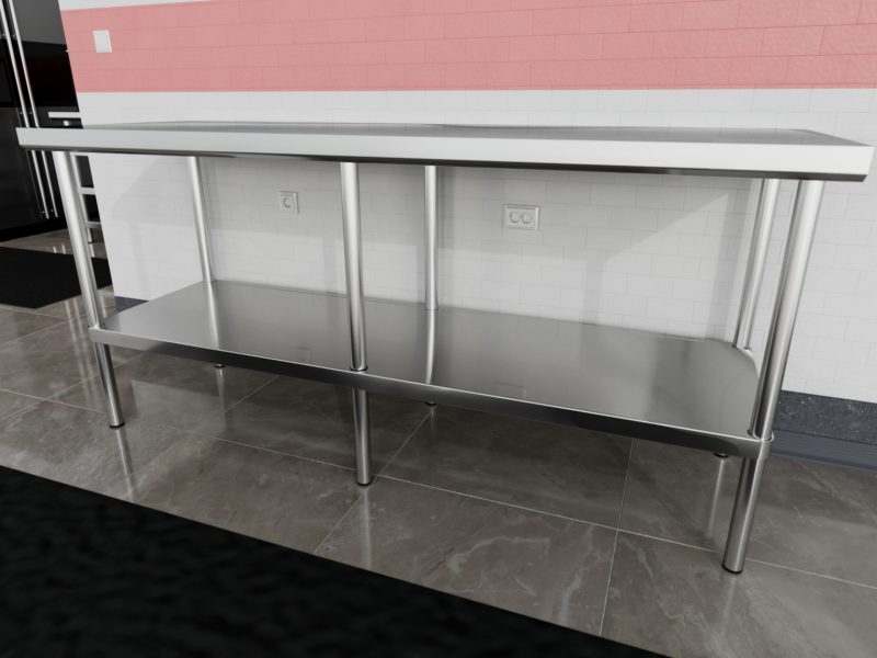 Для дополнительного места  хранения этот рабочий стол включает  нижнюю полку. Вы можете хранить муку, сахар и многое другое на этой полке, чтобы все ваши наиболее часто используемые расходные материалы были организованы и находились в пределах вашей досягаемости.